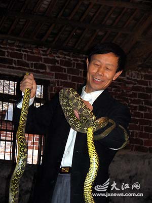 10月16日,本報(bào)(注:江南都市報(bào))記者赴宜春向蛇王老黃拜師學(xué)藝,既感受了隨蛇王體驗(yàn)抓毒蛇時的心驚膽戰(zhàn),也聽到了蛇王驚心動魄的歷險(xiǎn)故事。