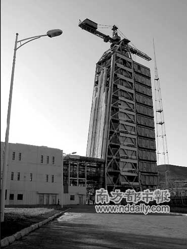 站到中心的發(fā)射塔的11層平臺(tái)上,正好可以看清對(duì)面山頂?shù)墓欧榛鹋_(tái),據(jù)說(shuō)那是楊家將的遺址。夕陽(yáng)眩光中的古老烽燧,長(zhǎng)空下線(xiàn)條精確的火箭發(fā)射塔,兩個(gè)時(shí)代的軍事圖騰之間,似乎注定了某種因緣。