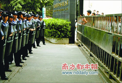 “工人把107國(guó)道堵了!”昨日下午2時(shí)許,司機(jī)劉先生給本報(bào)打來電話,說在寶安西鄉(xiāng)107國(guó)道南太天橋自寶安往關(guān)內(nèi)方向被多名工人封堵。造成寶安方向交通堵塞,車輛大排長(zhǎng)龍。記者下午3時(shí)許到達(dá)現(xiàn)場(chǎng)時(shí),堵路情況已經(jīng)緩解,工人們?cè)诮值擂k和勞動(dòng)部門勸解下逐漸回到廠內(nèi)。在位于西鄉(xiāng)南太路的華洋公司門外,多名警察身攜防暴裝備嚴(yán)陣以待,防止暴力事件的發(fā)生。另有幾十名巡防隊(duì)員、保安守在門口。