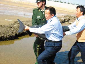 昨天上午10時(shí),記者聯(lián)系了膠南市漁政部門,該部門的曲站長迅速趕到現(xiàn)場(chǎng),確認(rèn)這的確是一只小海豚,“海豚出現(xiàn)在淺海的現(xiàn)象很少見,最近幾年偶爾能在青島海域發(fā)現(xiàn)海豚。”曲站長介紹說,“這只小海豚可能是跟媽媽出來捕食時(shí)被沖散的,及時(shí)將它放歸大海,母子應(yīng)該可以重逢!