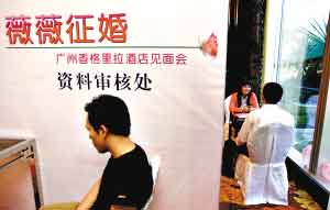 當天的征婚,薇薇可做了充分準備,對前來現(xiàn)場的每一個應征者,她都讓他們填寫一份應征資料表,上面除了正常的姓名、出生日期、身高、體重等數(shù)據外,有關應征者的月均收入、住房狀況、從事行業(yè)、工作職務等更為具體的資料也要填寫。前來“面試的”,不乏博士生、碩士生和在讀大學生。這一點,也尤其讓薇薇滿意,應征的張先生,就懷抱大堆證件,包括四、六級英語證書等,向薇薇推介自己。