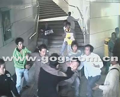 陳晶等四人一邊將男青年控制在通道內(nèi),一邊撥打110報警,此時人群中突然沖出七八名二十歲上下的男青年,對四人拳打腳踢。張駿用來報警的一部價值1000余元的手機被當(dāng)場搶走,瘋狂的行兇者隨后還將四十多歲的鄧國富從幾級臺階踢到地上。