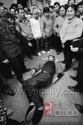 昨日上午9時30分,昆明市西山區(qū)綜合執(zhí)法局執(zhí)法人員在西壩路清理占道經(jīng)營時,與一家小超市老板夫婦發(fā)生爭執(zhí),在執(zhí)法人員強行拉走占道的冰柜時,遭到這對夫婦阻撓,沖突中超市老板當場血流滿面,門牙被打掉兩顆。執(zhí)法人員稱,他們是正常執(zhí)法,傷者是在暴力抗法中意外受到傷害的。