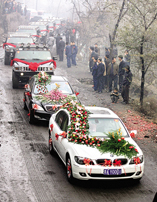 兩輛豪華轎車帶著12輛悍馬組成的迎親車隊緩緩走在鄉(xiāng)間的路上,每經(jīng)過一個村莊就停下燃放鞭炮,路兩旁站滿了觀看的鄉(xiāng)親,比過年看紅火還熱鬧。11月12日,一場奢華的婚禮在太原河口鎮(zhèn)舉行。一對新人婚禮的宏大場面和巨額花費震動了周邊。