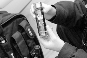 當(dāng)民警清查至酒店一個(gè)房間時(shí),房間內(nèi)的不法人員拒不開門接受檢查,并堵在房門處將門反鎖,民警幾次用鑰匙開門均未成功。民警見狀,果斷拆下房門“貓眼”,決定首次使用單警裝備中的催淚噴射器,制服抗拒的不法人員。只見一個(gè)管狀警用裝置,伸向了貓眼處,隨著發(fā)射命令的下達(dá),霧狀物質(zhì)隨即噴進(jìn)了屋中。這個(gè)管狀物品原來(lái)就是催淚噴射器,聽到屋中一陣響動(dòng)并伴有咳嗽聲后,民警立即沖開了房門,看到一男一女正抱頭蹲在地上,眼淚不斷的流出。此時(shí),兩人已經(jīng)失去抵抗能力,警方隨即將二人控制。
