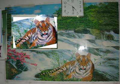 昨天晚上九時(shí)許,網(wǎng)友“攀枝花xydz”在“打虎派”的大本營色影無忌華南虎臨時(shí)論壇里發(fā)帖稱:“老虎是假的。我今天仔細(xì)看我家的一副掛在墻上的老虎畫,除了耳朵不一樣,哪里都是一樣的,連老虎的紋路都是一樣的。但我不知道怎么傳圖,我已經(jīng)照下來了。”今天上午10點(diǎn)半,網(wǎng)友小魚啵啵啵將他收到的圖片發(fā)到了同一論壇,《人肉引擎搜索結(jié)果,請(qǐng)看四川攀枝花朋友給我發(fā)的疑似老虎原圖》。這張照片剛一出來,到中午就已被頂?shù)搅?3頁。各路高手更是立即將年畫老虎與“周老虎”進(jìn)行了比對(duì),得出是同一只老虎的結(jié)論。打虎陣營一片歡呼。