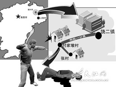 昨日上午,在疾馳的汽車(chē)上,德興市市委報(bào)道組負(fù)責(zé)人向記者介紹情況時(shí)說(shuō)的第一句話就是:“那場(chǎng)面太慘烈了,劉民是在遇害一個(gè)多小時(shí)后才被當(dāng)?shù)卮迕癜l(fā)現(xiàn)的。”