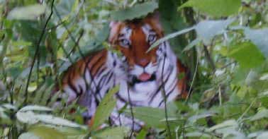 (第9張照片16:39:59):朱巨龍:“這張照片中的老虎眼睛明顯放光,光亮甚至透過了前方的葉子!
