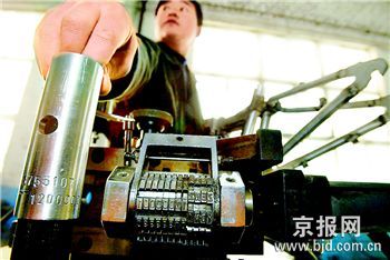今天上午,北京自行車刻制編碼現(xiàn)場(chǎng)會(huì)在石景山舉行。在一家專門生產(chǎn)運(yùn)動(dòng)型自行車的企業(yè)廠房?jī)?nèi),記者看到,工人正使用刻碼機(jī)往自行車的前臉管或三通管上刻制15位的全國(guó)統(tǒng)一編碼。因15位編碼較長(zhǎng),所以均刻制成雙層。企業(yè)負(fù)責(zé)人告訴記者,編碼的前4位是向編碼管理部門申請(qǐng)的企業(yè)代碼,后面則是車種、流水線等號(hào)碼。