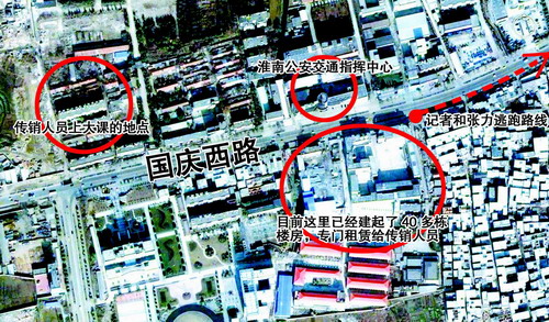 張力簡單地介紹了情況:一個(gè)龐大的非法傳銷組織,此地大約40棟房屋內(nèi)租住有近5000人,打著“天津天獅生物發(fā)展公司”的旗號(hào),推銷的是一種賺錢的方法,新人入會(huì)交納2800元,采用非法傳銷通用的五級(jí)晉升制度。新人剛來無論干什么都會(huì)有人陪同,寸步不離,包括上廁所和洗澡。