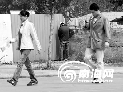 3日下午13點,記者來到39路車海經(jīng)院總站,站內(nèi)?恐奈遢v公交車。車站右側(cè)路邊有一施工工地,工地的圍墻外距離車站約100米的地方,正對著寬闊的大街,而該處的地面和墻面上卻清晰可見小便后的痕跡。一位過路的學(xué)生告訴記者,這里簡直成了“公共廁所”,時而有一些司機(jī)和行人來小便,對此他已感覺“習(xí)以為!薄5搅讼挛1點04分,記者看到一名30歲左右的公交車司機(jī),從車上走下,沿著街邊的圍墻一路走,當(dāng)走到這一位置的時候,他就開始小便,完全沒有注意到他身后來來往往的行人。記者在現(xiàn)場拍照時,剛剛拍到他的背面,該司機(jī)便離開了。
