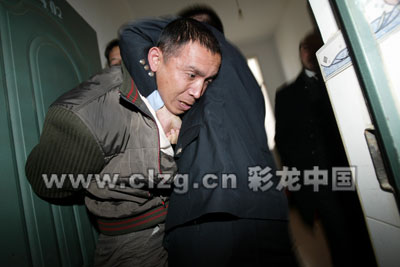 面對(duì)突然出現(xiàn)的法警,劉某似乎早有心理準(zhǔn)備,起身?yè)Q好皮鞋準(zhǔn)備出門。然而,正當(dāng)法警準(zhǔn)備給劉某戴手銬時(shí),站在一旁的劉某的妻子失聲哭了起來(lái):“你們要帶他去哪兒?……”聽(tīng)到妻子的哭聲,原來(lái)故作平靜的劉某開(kāi)始激動(dòng)起來(lái):“我不是不讓你們銬,你們要戴手銬就銬在前面,不要銬在后面!”劉某一邊叫一邊和法警對(duì)抗著,而一旁的劉某妻子也跑到了丈夫身邊,拳打腳踢地試圖阻止法警帶走丈夫。但最終,3名法警還是將劉某的手銬上。