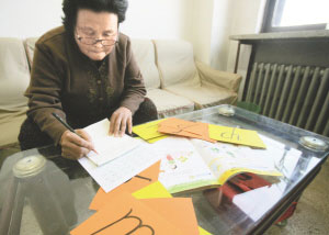 說到去年長春舉辦亞冬會(huì),姜淑蘭就想志愿帶外國友人看看美麗的長春,但對外語一竅不通,所以這個(gè)愿望只能作罷。直到兩個(gè)月天前發(fā)生的一件事情,才又堅(jiān)定了老人學(xué)英語的決心。那天一個(gè)黑人小伙子焦急地跑到老人面前,嘰里呱啦地說了一通,老人很無奈地?fù)u搖頭。老人當(dāng)時(shí)就想,要是自己懂英語,那該有多好。所以從第二天開始,姜淑蘭找孫女要來了英語課本,自己在家閉門造車,老人把26個(gè)英文字母倒是認(rèn)全了,但字母組合到一起,老人就咋也整不明白了。所以老人開始上街尋找外語學(xué)習(xí)班。但沒想到找到的前兩個(gè)學(xué)習(xí)班都因?yàn)槔先四昙o(jì)太大,沒有接收她。后來老人就將自己的年齡隱瞞了10歲,但仍然沒有人收她。老人依舊倔強(qiáng)地認(rèn)為自己不但能學(xué)會(huì)英語,并且能和年輕人一樣能學(xué)好。 (記者 蔡錚 陶彬)