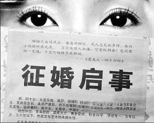 征婚啟事展示詩詞與書法