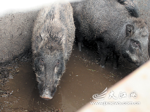 在院子一側(cè)的小屋內(nèi),記者第一次見到活生生的野豬。見生人靠近,兩頭野豬竟兇猛地沖了過來,一躍身,前腳搭在一米多高的鐵欄上,伸出長嘴嚎叫著,那白皙的獠牙令人望而生畏。夏水華走上前用手撫摸野豬的頭,并拿來兩只紅薯喂養(yǎng)它們,野豬變得溫順了,不再嚎叫,只顧享受著自己的美食。