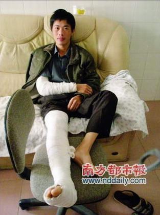 現(xiàn)在,他終于要面對這個(gè)問題了。11月20日下午,黃慶南走在龍湖新村的路上,尾隨其后的兩名刀手,將一柄40厘米長的砍刀砍進(jìn)他的左腿,之后是肩膀、后背、右腿……左腿筋骨、血管、肌腱與神經(jīng)全被砍斷,只剩少許皮肉相連。