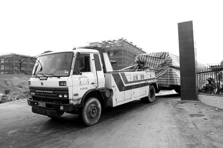 昨天早上約9時30分,多家媒體記者趕到現(xiàn)場,當記者表明身份想進入停車場采訪,兩名自稱為該停車場的工作人員將記者攔在門外,說是領(lǐng)導指示不能讓人進入,讓記者離開。記者后看到有一輛交通清障車拖著一塑料布包裹嚴實的物體離開,記者準備拍照,其中一男子試圖用手阻擋。