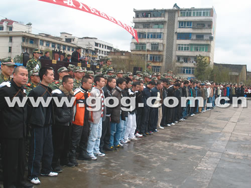 據(jù)了解,這是建國以來安順第一起涉黑案,屬公安部、最高檢和最高法院掛牌督辦的案件。昨日下午2時(shí)10分,數(shù)十名全副武裝的武警戰(zhàn)士將50名雙堡幫成員押進(jìn)會(huì)場。數(shù)千市民自發(fā)趕到若飛廣場,參加了宣判大會(huì)。