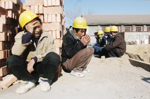 昨日上午11時30分,該工地內(nèi)聚集著10名工人。他們稱,1個小時前他們和其他工友在此地被人毆打,被打原因是他們討要工資。打人者為20余名男子,指使者則為該工地項(xiàng)目部經(jīng)理劉某!拔覀冊谶@就是要錢,拿不到錢我們不走。”一名工人邊哈氣暖手邊說。