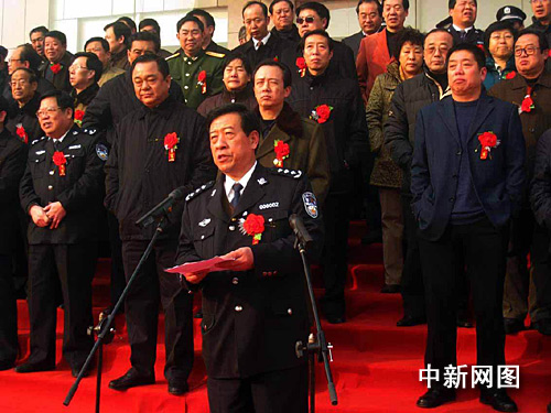 山西省省公安廳黨委副書記、常務副廳長李連琪在山西省臨汾市公安局作戰(zhàn)指揮中心啟動暨升國旗儀式上致詞。作者:劉一