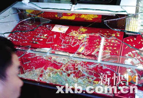 附近一商店店主用手機(jī)拍下的被劫金鋪的照片顯示,一個(gè)柜臺玻璃被砸碎。記者到該金鋪看到,現(xiàn)場已經(jīng)清理,各種金銀首飾擺放整齊,柜臺玻璃也已更換,店里看不出曾被搶劫的痕跡。見許多記者前來采訪,老板婉言拒絕并將店門關(guān)閉。