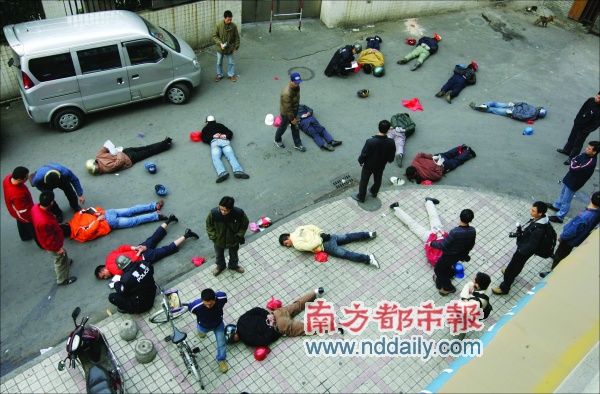 9時40分,裝扮成乘客的便衣警察從出口緩緩走出,“搭客仔”們跟往常一樣,圍住他們就要作案!安辉S動,警察!”便衣警察大喝一聲,順勢制服一個作案嫌疑人。見到同伙被抓,其他“搭客仔”馬上四處逃竄,車站出口頓時一片混亂,站內(nèi)乘客都往外跑,外面路口的人卻擁過來看熱鬧。其中一名男子,飛奔中被便衣?lián)涞乖诘,手腳朝天還想反抗,被其他趕上來的便衣合力制服。幾分鐘后,14名涉嫌盜搶的“搭客仔”都趴在了地上。
