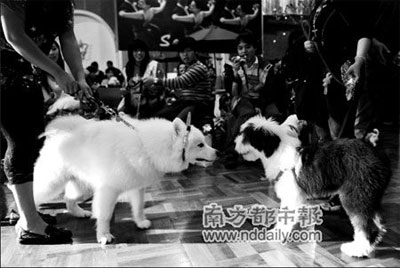 現(xiàn)場一下子要請(qǐng)來幾十名狗狗,真不容易。狗主們各顯神通,有的拿包包當(dāng)工具,有的直接抱進(jìn)來的,訓(xùn)練有素的狗狗則直接跟在主人后面閃亮登場了。它們?cè)诂F(xiàn)場看到這么多同類,都好奇地互相打量,小心翼翼地上前用鼻子嗅嗅,算是問個(gè)安了。