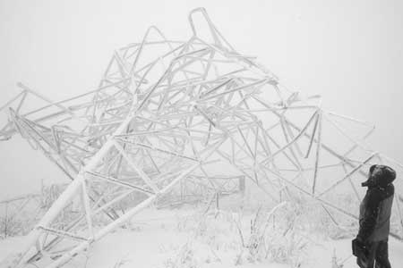 因大別山地區(qū)雪災(zāi)嚴重,三峽電力外送華東的大動脈——500千伏宜(湖北宜昌)華(上海華新)直流輸電線路受此影響,其中安徽金寨張沖段1146號~1153號線塔覆冰嚴重,導致4座500千伏線塔18日倒塌,這條電力外送通道送電因此中斷。我省送變電公司385名搶修人員已趕到現(xiàn)場進行搶修。