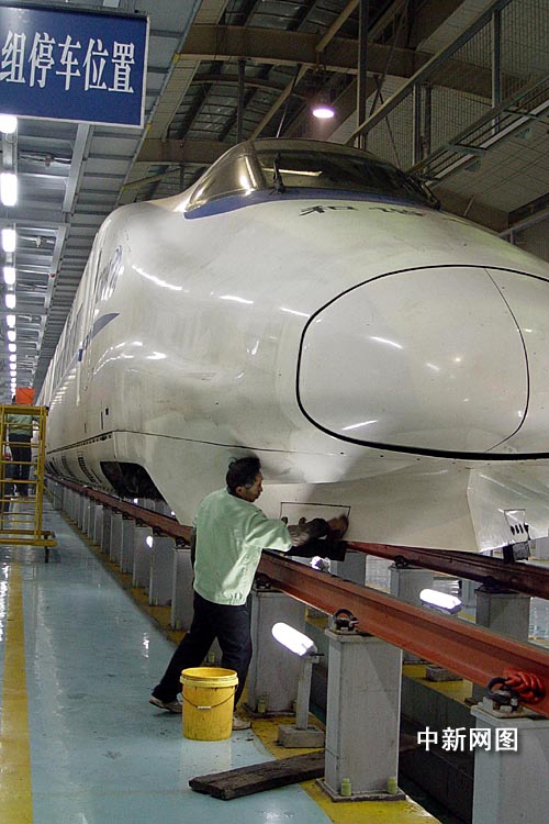 記者看到,在“CRH2—014A”動車前,十六名保潔工正對車體進行“洗澡”清潔,機務(wù)段的師傅對車輪和制動裝置進行“體檢”檢修,客運段的姑娘們也開始對車廂進行“美容”。