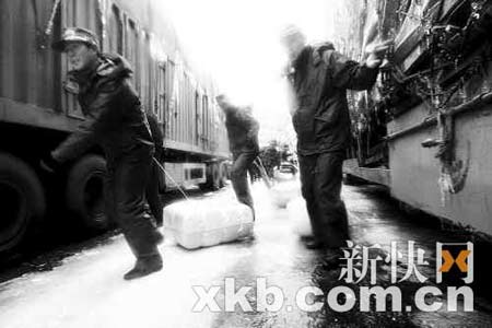由廣東省交通廳從韶關(guān)、廣州等地調(diào)集的十余臺(tái)推土機(jī)和平地機(jī),昨天全部抵達(dá)廣東京珠北有關(guān)路段,展開破冰作業(yè)。在推土機(jī)的重壓下,寒冰被碾碎,灑鹽車緊隨其后往路面上撒鹽,逐步清出一段段不再打滑難行的路來……