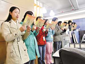 1月30日早上9時(shí),東莞市東城區(qū)一家寫字樓內(nèi)傳出了朗朗的讀書聲。幾十名員工站在一起大聲誦讀《弟子規(guī)》。這一寫字樓里出現(xiàn)的奇特場景源于公司的一項(xiàng)規(guī)定:每天早上9時(shí)到9時(shí)15分,所有員工都要讀書15分鐘的國學(xué)經(jīng)典。