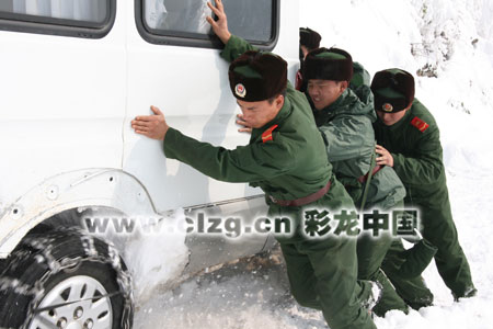 每天,官兵們都要沿著積雪覆蓋、路面結(jié)冰的山路,驅(qū)車幾十公里才能到達(dá)受災(zāi)現(xiàn)場。由于天冷路滑,官兵們只能清除雪障、疏通道路后才能進(jìn)發(fā),有時(shí)10多公里的路程要2個(gè)小時(shí)才到達(dá)。一到目的地,官兵們就迅速整隊(duì)集合,戴上安全帽,系上攀登繩,手拿砍刀和斧頭,背上火焰噴射器,分成若干個(gè)小組,沿著山高坡陡、積雪齊膝的小路向海拔2000多米的山上進(jìn)發(fā)。