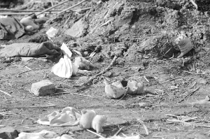 2月8日下午2時(shí)許,劉寨村第三村民小組張國(guó)華家的舊址已被全部推平,并且用新土覆蓋。但村邊的大楊樹有些已被炸得斷枝,地上也散落了不少衣服、文具盒及幾個(gè)布老虎玩具。