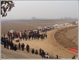 上午11點(diǎn),場(chǎng)子里還是空蕩蕩的。漸漸地,許多男女賭徒或開車,或騎著自行車?yán)废嗬^趕來(lái)。中午,一輛車號(hào)為“陜-08365警”的警車趕到現(xiàn)場(chǎng),兩名警察各牽著一只狗走向“賽場(chǎng)”。