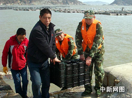 持續(xù)寒冷的天氣連魚也受不了,春節(jié)過后南麂島網(wǎng)箱里的養(yǎng)殖魚開始陸續(xù)出現(xiàn)凍死現(xiàn)象,魚排上漂浮著一條條被凍死的魚兒。災(zāi)情發(fā)生后,溫州邊防支隊南麂邊防派出所迅速組織官兵幫助漁民群眾清理打撈死魚,并及時將未凍死的魚轉(zhuǎn)移到溫室中進(jìn)行養(yǎng)殖,盡量降低災(zāi)害帶來的損失。