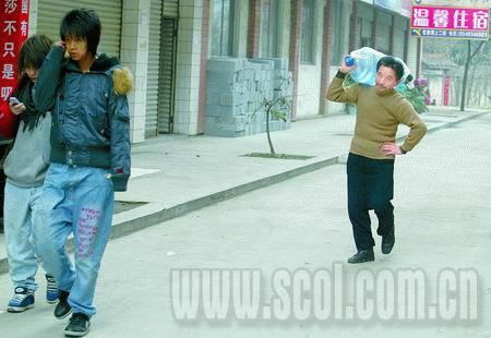 由于兒子楊曉勇在學(xué)校經(jīng)常勤工儉學(xué),老師和學(xué)校領(lǐng)導(dǎo)都對(duì)這個(gè)貧困的家庭有所了解,加上向自己的專業(yè)老師極力推薦,父親楊選明到成都的第二天就被安排了一堂著衣模特課。想到自己來(lái)這里是為了給兒子掙學(xué)費(fèi)和生活費(fèi),老人慢慢忍受著教室里幾十名男女學(xué)生的目光和畫筆的雕琢!拔野阉麄兿胂蟪晌以谔沾蓮S做的一只只泡菜壇子,一下就適應(yīng)了!”那天,楊師傅掙了5元錢,很開心,他說(shuō)這相當(dāng)于十斤稻谷的錢了。