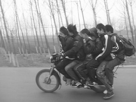昨日上午,記者在采訪途中看見一輛載著6名男中學(xué)生模樣的摩托車疾駛在洛界公路上,著實(shí)讓記者為他們捏了一把汗。