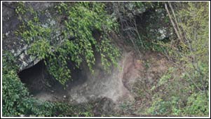 拍攝的實(shí)際地點(diǎn),位于饅頭山和主峰之間。發(fā)現(xiàn)疑似華南虎的新坊村有村民806人,耕地728畝,多為稻田。丹霞地貌的石頭山和林地面積1萬(wàn)多畝,人口密度較大,從公路到拍攝地點(diǎn)的2公里中,沿途要經(jīng)過(guò)4處村民的住宅,沿途還能看見(jiàn)無(wú)人看守的家畜在田間吃草。在臨近拍攝點(diǎn)處,還有農(nóng)田和一座村民的牛棚。在拍攝點(diǎn)以上,有一座香火旺盛的廟宇,許多人每天從此路上山。
