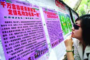 征婚啟事貼進(jìn)校園布告欄