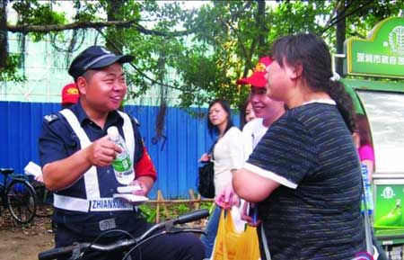 “柳的妞”表示,當初想到給交警送水,是覺得他們的工作特別辛苦,整天都在露天里執(zhí)勤,工作量也特別繁重。隨著活動的發(fā)展,又將對象擴大到城管、交通協(xié)管員,以及環(huán)衛(wèi)工人等所有正在工作著的人。她表示,活動的最終目的只是想表達對所有勞動者的問候。