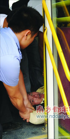 “談判都持續(xù)將近三個(gè)小時(shí)了,連公安局分管治安的副局長(zhǎng)都親自上陣跟匪徒談判了。不要說被挾持的人質(zhì),就是我們?cè)谙旅婵吹娜硕祭哿,大家都捏了一把汗。再這樣僵持下去,那乘客非被弄死不可!70路公交車所屬公司的的一名乘務(wù)員說。