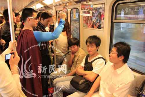 “超人”現(xiàn)身上海地鐵 網(wǎng)友質(zhì)疑為商業(yè)炒作(圖)