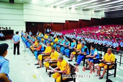 昨日,參與開庭審理這起黑社會性質(zhì)組織犯罪案件的旁聽人員有被告人員家屬等社會各界人士共500人左右,其中包括禪城區(qū)人大代表和政協(xié)委員40多人。除此之外,還有參與押送、維持法庭審理秩序的法警和公安民警多達(dá)200人左右,以及36名被告人的辯護(hù)律師22人、禪城區(qū)檢察院公訴人員5名。該案開庭審理規(guī)模之大,備受社會各界高度關(guān)注,是禪城區(qū)法院成立以來所罕見的。