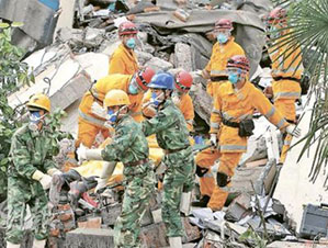 中新網(wǎng)5月16日電 據(jù)香港明報(bào)報(bào)道,該報(bào)記者15日在重災(zāi)區(qū)之一的四川省綿竹市實(shí)地采訪(fǎng),當(dāng)日在綿竹東汽中學(xué)廢墟中一名16歲女生尸體被救援人員抬出來(lái)時(shí),其紅腫的手中還緊緊握著一支筆。
