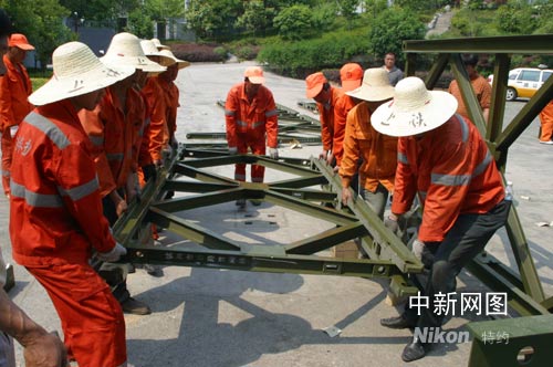 浙江赴川搶險(xiǎn)架橋突擊隊(duì)員加緊架設(shè)鋼橋演練(圖)