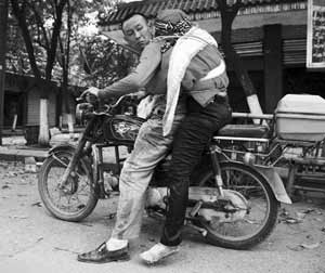 15日,英國《每日電訊報》刊登了一組圖片,記錄下中國抗震救災(zāi)過程中的一個個感人瞬間。在一張圖片上,一個在地震中痛失妻子的男子,用繩子將妻子的尸體綁在背部,送她去太平間。在極大悲痛的折磨中,他努力要給妻子些許死后的尊嚴。因此,他飽含深情,將她的身體與自己綁在一起———然后用摩托車載著她前往當(dāng)?shù)氐奶介g。英國媒體稱,這是大毀滅后存在的人性象征。