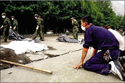 昨天一上午,官兵們共挖出3名被埋者,12點挖出的這名女性是黃泥村的村婦女主任,名叫劉曾群,今年50多歲。見到母親遺體,劉曾群的兒子和女兒哭跪在地。但3個人沒有一個是彭先根的老婆。彭先根手拿妻子11日在一處景點拍攝的照片說,這是她最后的照片,身后的景點叫龍吟瀑。地震后,龍吟瀑不復存在。