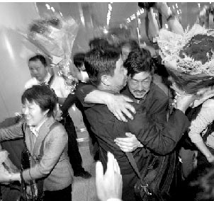 “我們終于活著回來了!弊蛲11點30分,首都1號航站樓,38名北京游客搭乘CZ3904航班平安抵京,迎接他們的是親人激動的擁抱和淚水。據(jù)了解,這38名游客是本市首個從四川災區(qū)返回的大型旅游團,在成都開往九寨溝的途中,他們遭遇地震受困茂縣,度過了“與世隔絕”的56個小時。