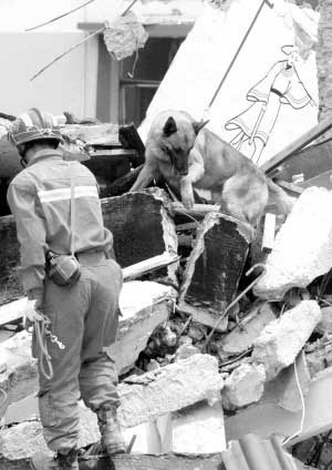 據(jù)賈樹(shù)志介紹,這次汶川地震,國(guó)家地震局應(yīng)急搜救中心共派出了12只經(jīng)驗(yàn)豐富的搜救犬。其中4只在映秀鎮(zhèn),8只在北川縣,僅在映秀,搜救犬就救出了17名被埋超過(guò)3天的幸存者。映秀灣發(fā)電廠在16日和18日救出的三名被困者,都是搜救犬最先發(fā)現(xiàn)。
