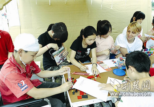 記者走進一座座帳篷,只見里面擺滿B超儀、心電圖儀、X光機和移動手術(shù)臺等,醫(yī)療人員正忙碌著為傷員們檢查、治療!耙苿俞t(yī)院”一角,有一座帳篷專門用于兒童心理咨詢,負責(zé)人是美麗的心理咨詢醫(yī)生奧麗婭。咨詢所內(nèi)擺放著一張方桌,上面擺滿五顏六色的水彩筆和漫畫書等,奧麗婭根據(jù)每個就診兒童的情況,為他們制訂相應(yīng)的心理康復(fù)方案!霸谖倚闹,奧麗婭姐姐就像天使!11歲的吳鑫在地震中受傷,至今還頭纏繃帶,坐在輪椅上接受恢復(fù)治療。他告訴記者,奧麗婭對孩子們十分和藹,也很有耐心,經(jīng)常同孩子們一起做游戲、開玩笑,大家都很喜歡她。至目前,已有20多個孩子定期接受奧麗婭的心理治療。(特派記者 宋枕濤)